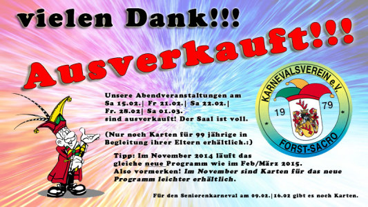 16. Februar 2014Veranstaltungen am 15. und 16. Februar 9. Februar 2014Auftakt 20147. Februar 2014An alle Kinder!!! 3. Februar 2014Heut steppt der Adler backstage 30. Januar 2014Ausverkauft!!! 26. Januar 201420. Männerballett- Turnier in Kolkwitz 20. Januar 2014Neujahrsempfang des KVL 2014 14. Januar 2014NEU! Neue Webseite NEU! 24. Dezember 2013Auf dem Forster Weihnachtsmarkt«‹161718192021› Teilen mit: Auf Facebook teilen (Wird in neuem Fenster geöffnet) Facebook